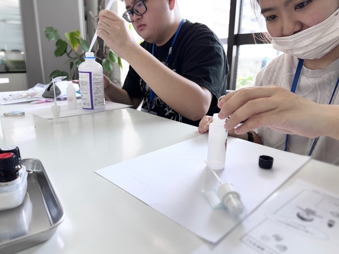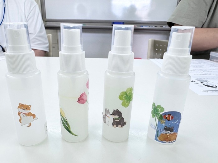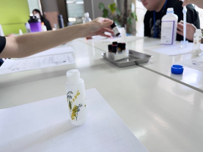 須東先生が用意してくださった精油を組み合わせながら、自然由来の自分が好きな香り、自分がリラックスできる香りを見つけ、セルフケアに繋がる自分だけのアロマスプレーを作りました😊